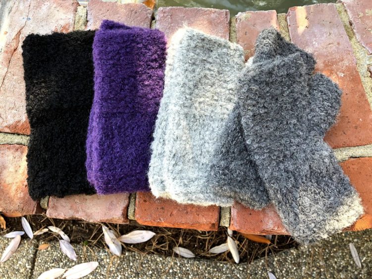 These women’s alpaca boucle gauntlets are super soft and comfortable. The fingerless design lets you use your phone or drink coffee without taking them off.